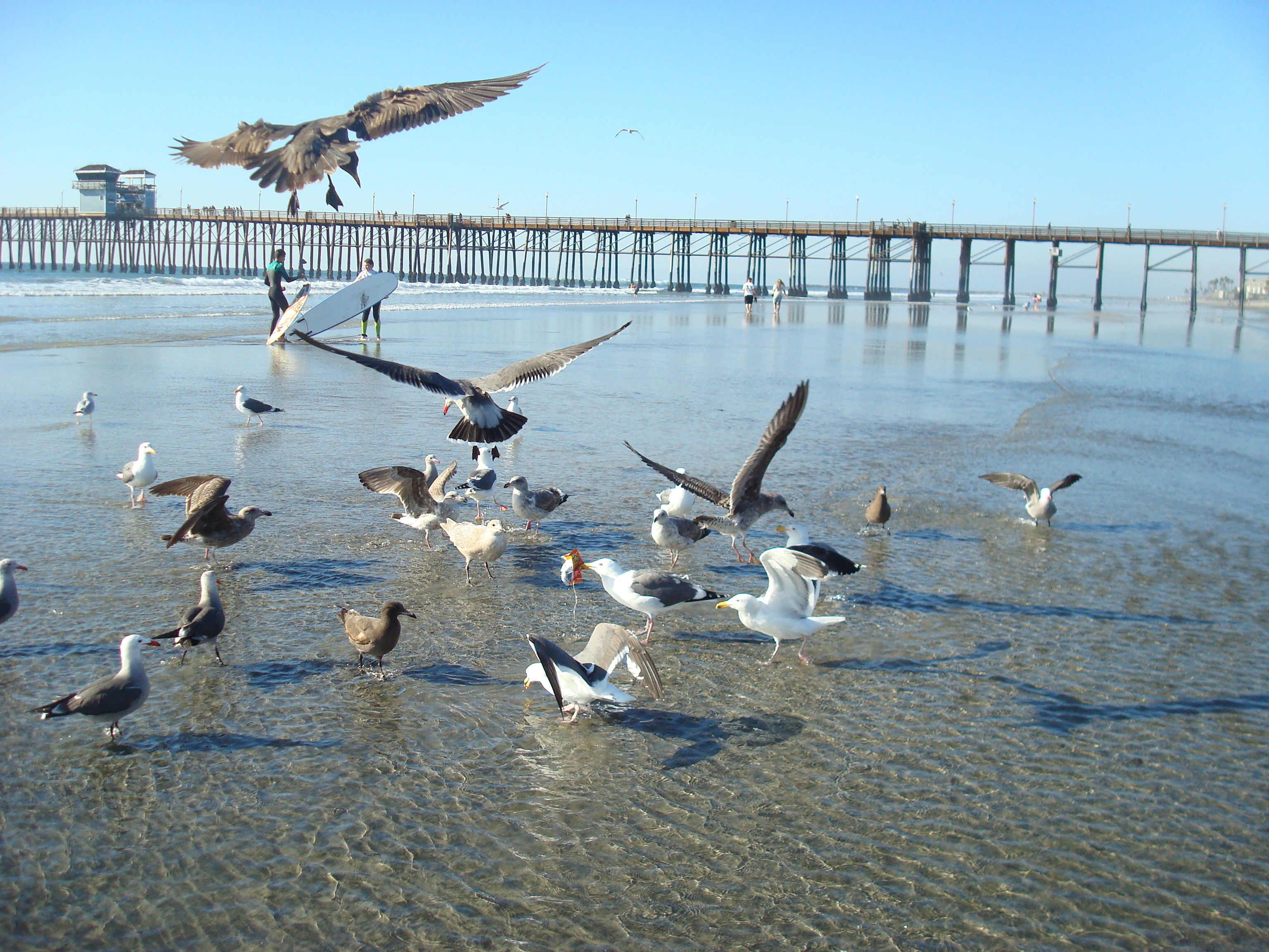 Seagulls fighting over an unopened package of Cheetos.  Seriously entertaining fun at the beach.