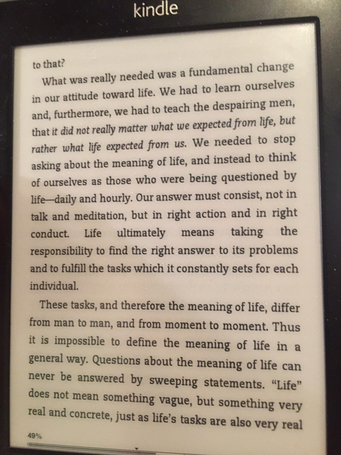 I just read (for the first time) Viktor Frankl’s Man’s Search for Meaning.  I wish I’d read it before.  If you haven’t read it, you should.