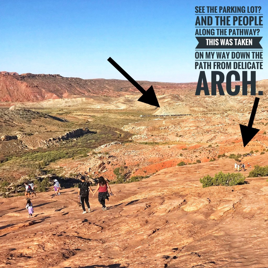 I have never been so happy to crawl into bed as I was that night/morning. However, the reason I’d driven so far was so I could hike to the Delicate Arch at dawn, so I slept about four hours, woke at 6 AM and went hiking in the heat. The hike was much more strenuous than I anticipated and I actually thought at one point that I might pass out, but I did not! I made it to the top along with a bunch of other people.