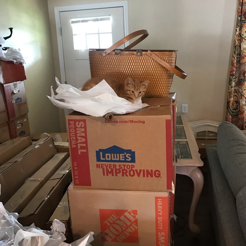 Finally, the moving truck arrived. Glory be and hooray. The following week I unpacked, discovering that I didn’t have enough room for everything. I had ditched a lot of furniture and shelves so I have literally no bookshelves for the 25 boxes of books I own. This is a problem, but I have the unpacked boxes all stacked neatly by the wall in the living room and outside my office door.